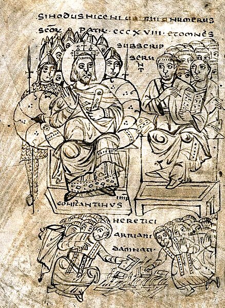 In 325 C.E., just 12 years after the Emperor Constantine declared Christianity to be a legal and acceptable religion, he convened the Christian bishops from across the Roman Empire at the Council of Nicaea to come to agreement about the official doctrines of the church. He was particularly concerned about the divisions in the church in relation to a way of thinking called Arianism, which held a view of Jesus as not being co-eternal with the Father and thus being distinct from and subordinate to the Father.
