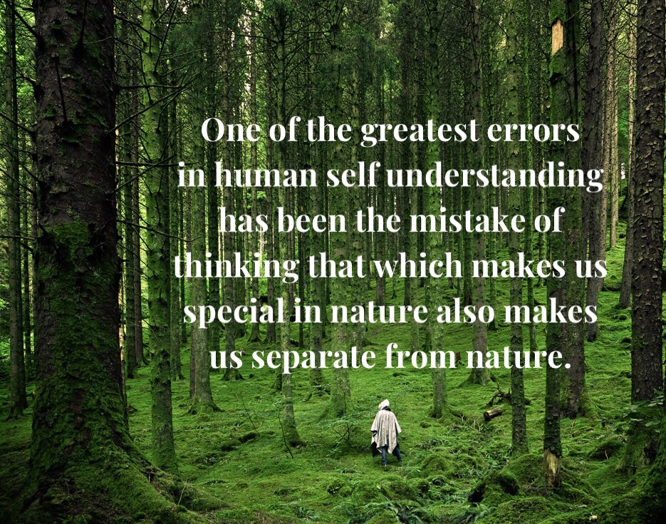 One of the greatest errors in human self understanding has been the mistake of thinking that which makes us special in nature also makes us separate from nature.