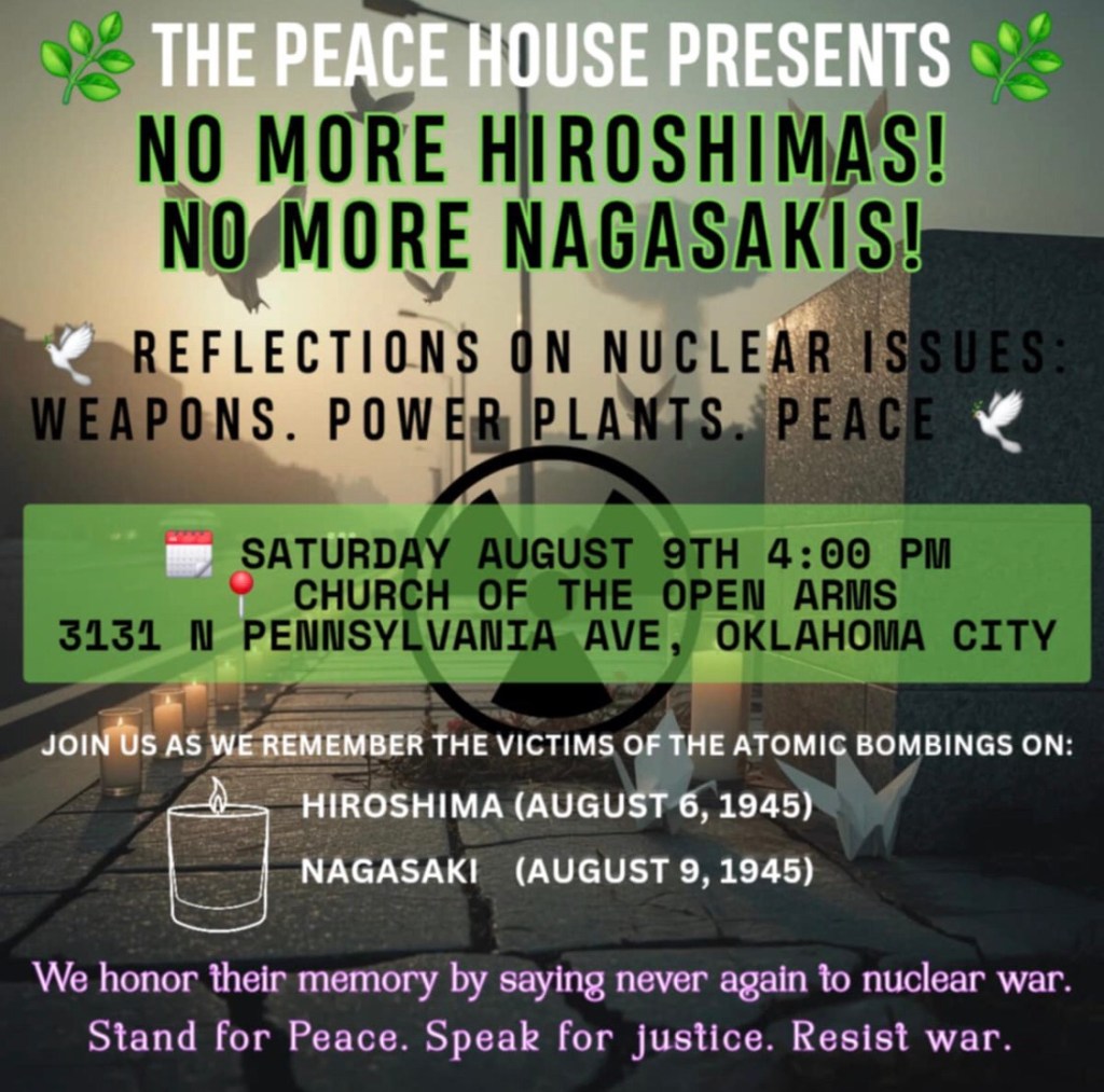 In a world with enough nuclear weapons to destroy all of humanity many times over, unless we address the evils of racism, economic injustice, militarism, ecological degradation, and fanatical religion that are the underlying causes of conflict, we will never be safe from the threat of the nuclear annihilation. Eventually the hatred generated by violence in all of its forms will overcome the fear of mutually assured destruction that has kept humanity from using nuclear weapons again since the United States so tragically dropped two atomic bombs on Hiroshima and Nagasaki 80 years ago.